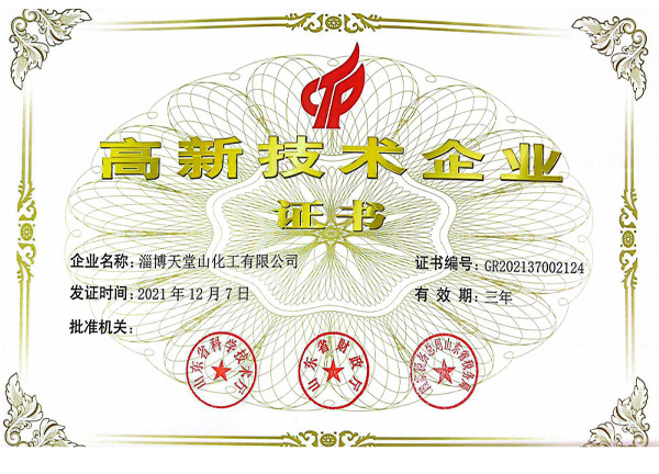 公司產(chǎn)品符合國家的產(chǎn)業(yè)政策,各種手續(xù)齊全,通過了環(huán)保、衛(wèi)生、消防、安全生產(chǎn)許可等各項驗收,企業(yè)化學品安全標準化三級達標驗收,并且通過了ISO9001質(zhì)量管理體系認證、ISO14001環(huán)境管理體系、ISO45001職業(yè)健康管理體系,先后被有關(guān)部門授予“市級重合同守信用企業(yè)”“消費者滿意單位”“質(zhì)量、計量管理先進單位”“勞動關(guān)系和諧企業(yè)”“企業(yè)免檢單位”“淄博市專精特新中小企業(yè)”“山東省化工明星單位”“山東化工發(fā)展?jié)摿?0強”“淄博市智能車間”“山東省創(chuàng)新型中小企業(yè)”“科技型中小企業(yè)”“高新技術(shù)企業(yè)”“山東省專精特新”等稱號。